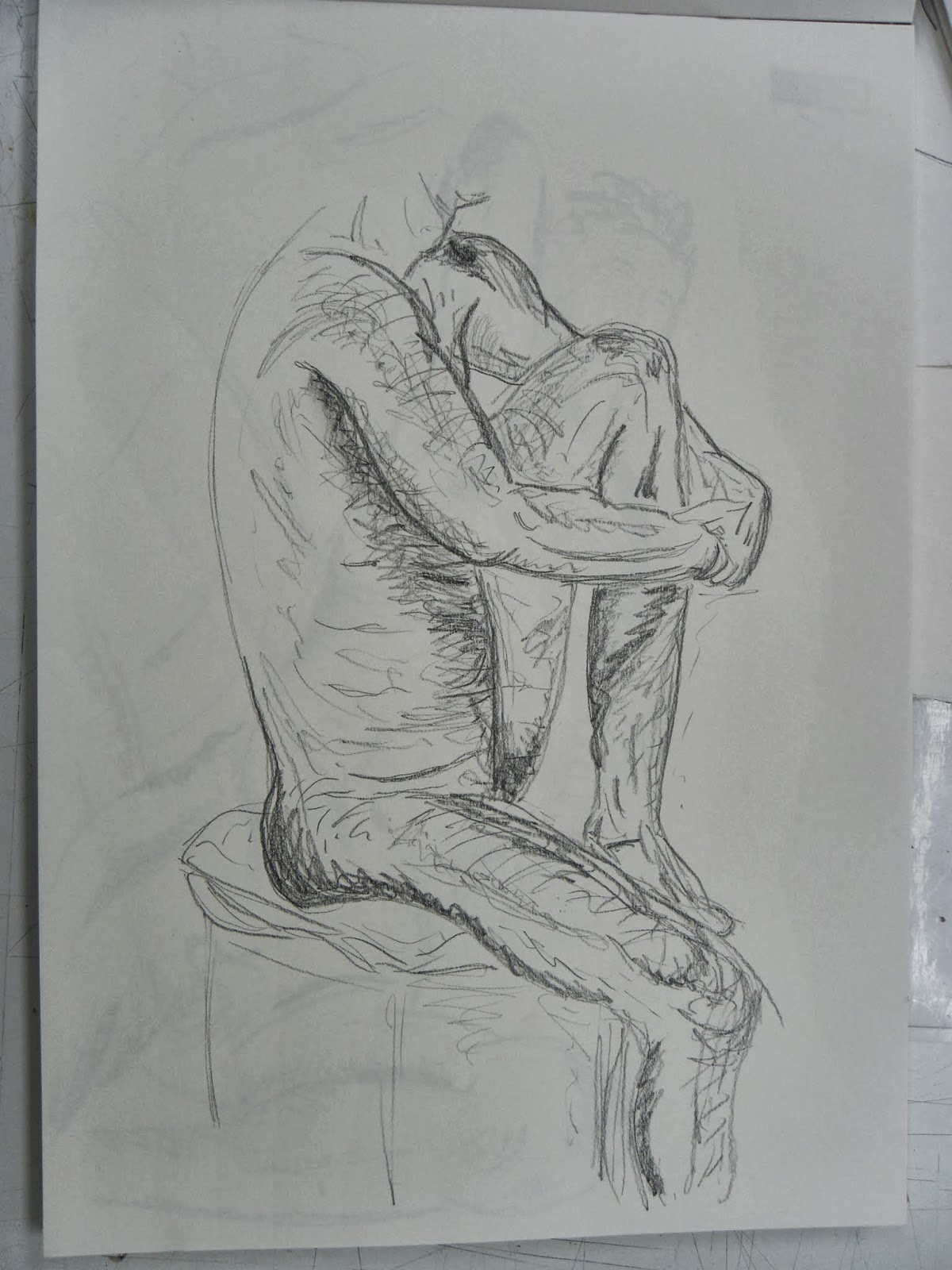 I was nervous to begin with, it wasn't at the thought of there being a naked model (turns out there's two), that doesn't bother me at all, rather the fact that I was going to meet new people. It was fine after a while and getting into the swing of things. I felt like I was being picked on slightly and being told I should be doing this and that to my drawing, however, I guess that's just how I'll learn though. I definitely achieved slight improvements as we went on. The very last one I did is my favourite, I might have to stick with drawing feet.